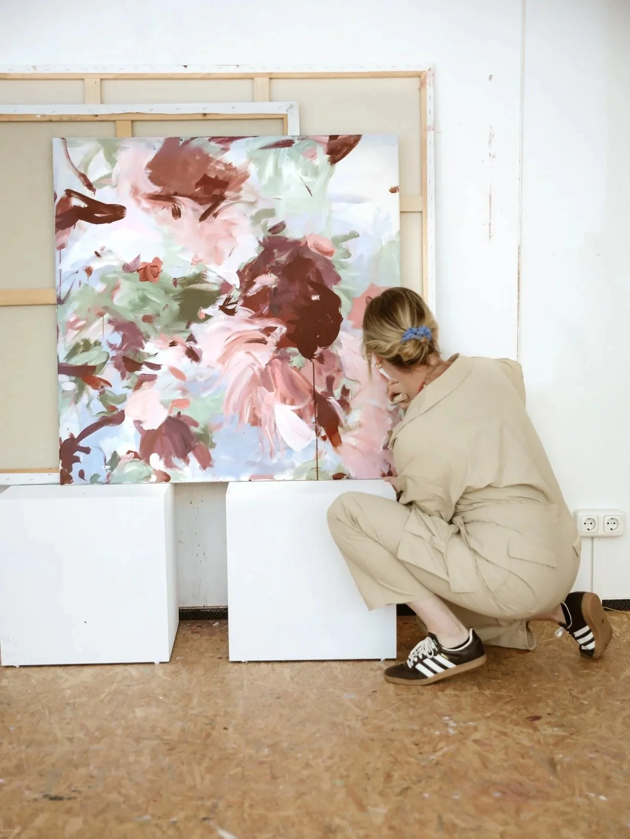Juliane Kellersmann (b. 1991) is a German abstract painter based between London and Northern Germany. With a background in design, her paintings draw from experiences and impressions in her own life through an abstract lens. Juliane’s intuitive works often emerge out of the process itself, by layering paint she creates movement and emotion. For Juliane, painting is an escape from reason and fact. It's about creating something that evokes emotions and captivates the viewer to stay. Through many layers of color, reality becomes more distorted and slowly no longer resembles fact, but a moment of standstill while personal emotions are touched upon. Juliane’s paintings are strongly inspired by her surroundings. She sees life as a constantly evolving whole, where every moment is unique. Capturing a specific moment, a memory in time, deconstructing reality into brushstrokes and marks is the core of her art.