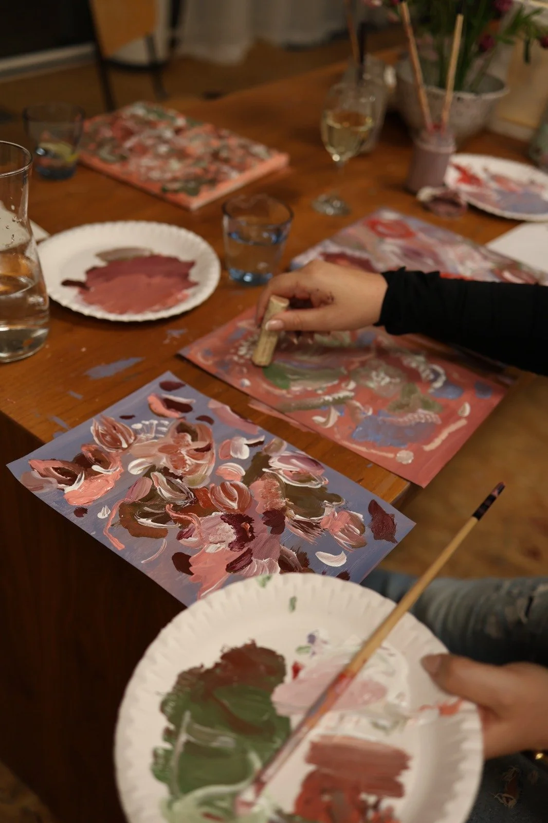Sip, paint, and unwind – welcome to my Art & Wine workshops in Oldenburg. In each session, I’ll give you a short introduction to the medium and theme (think: flowers and beyond), followed by guided ways of working on canvas.